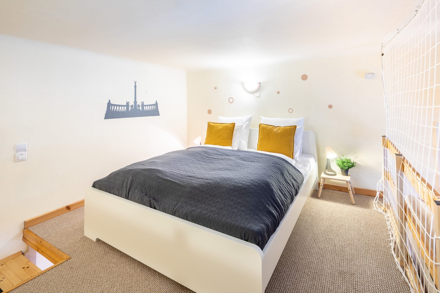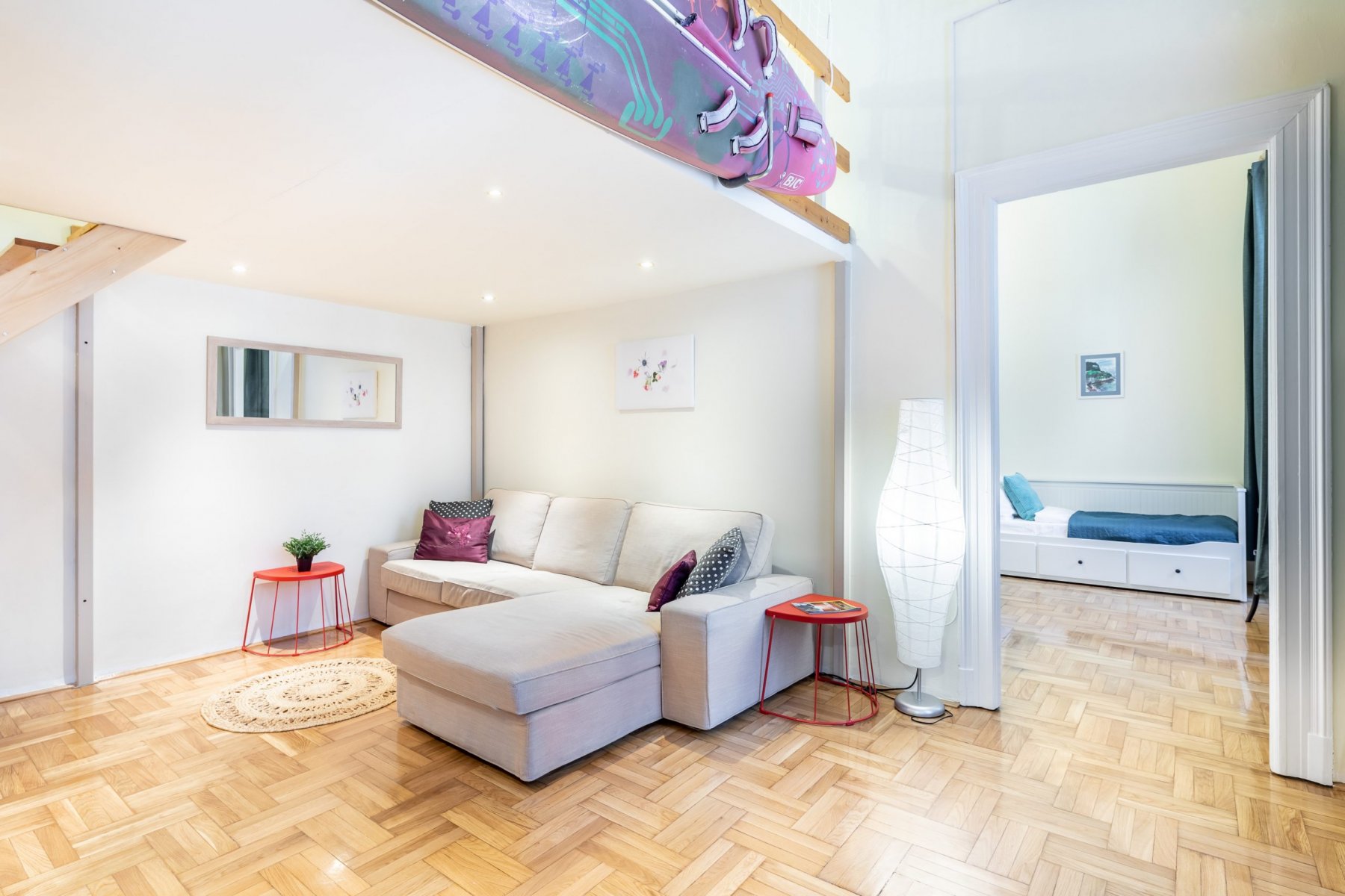 The living room has also a separated loft with a double bed, where two people can rest after a day full of adventures in Budapest.